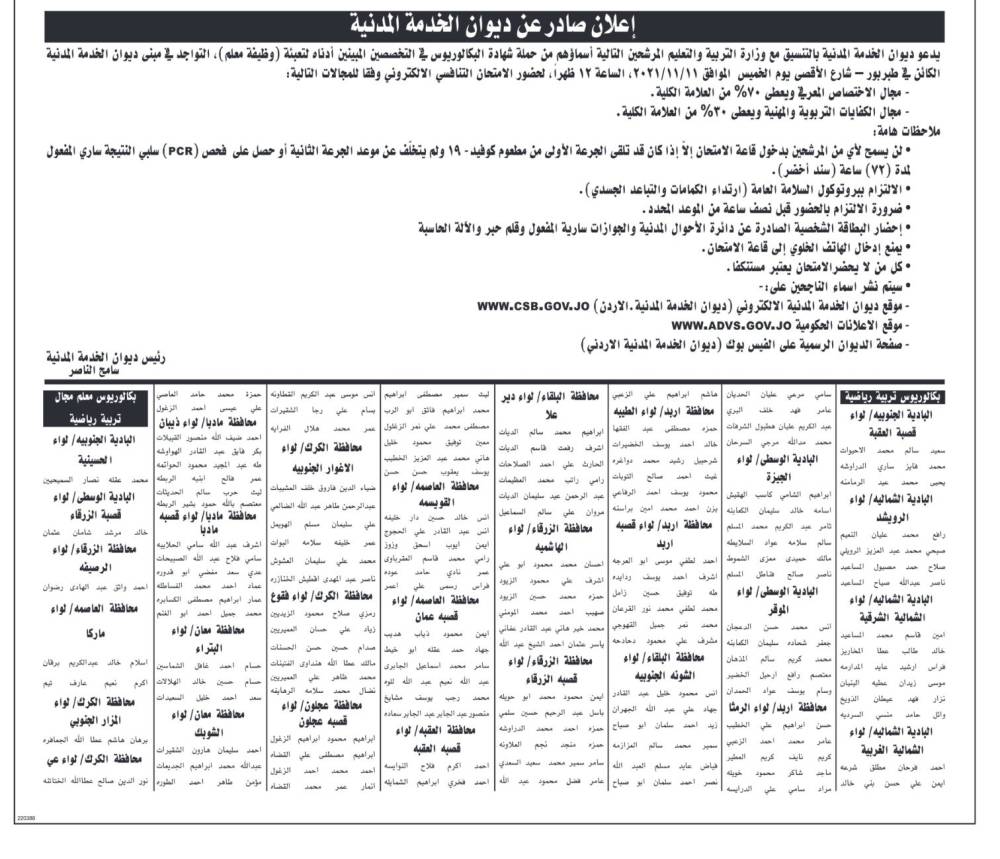 نبأ الأردن- دعا ديوان الخدمة المدنية بالتنسيق مع وزارة التربية والتعليم، مرشحين؛ لحضور الامتحان التنافسي الإلكتروني.