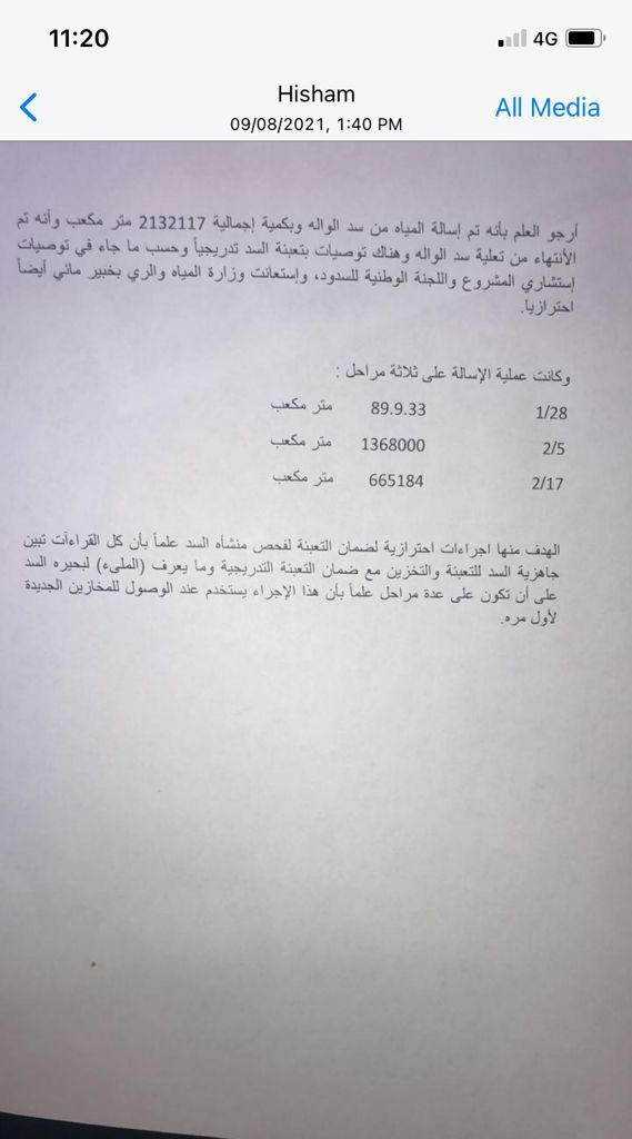 بناء على فهم ومتابعة الوزير الدكتور سعيدان لخطورة الموقف، وبناء على تقرير اللجنة الوطنية لسلامة السدود، وتقرير الخبيرين المحايدين النمساوي والألماني كانت المعادلة الرياضية الهندسية الكمية كالتالي: