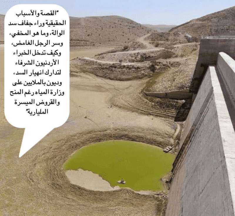 "القصة والأسباب الحقيقية وراء جفاف سد الوالة، وما هو المخفي، وسر الرجل الغامض، وكيف تدخل الخبراء الأردنيون الشرفاء لتدارك انهيار السد، وديون بالملايين على وزارة المياه رغم المنح والقروض الميسرة المليارية"