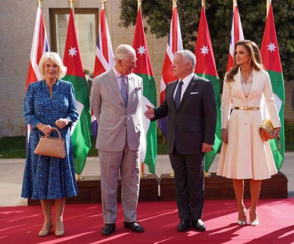نبأ الأردن- استقبل جلالة الملك عبدالله الثاني وجلالة الملكة رانيا العبدالله الأمير تشارلز، أمير ويلز ودوقة كورنوال في قصر الحسينية ببداية زيارتهما الرسمية إلى الأردن.