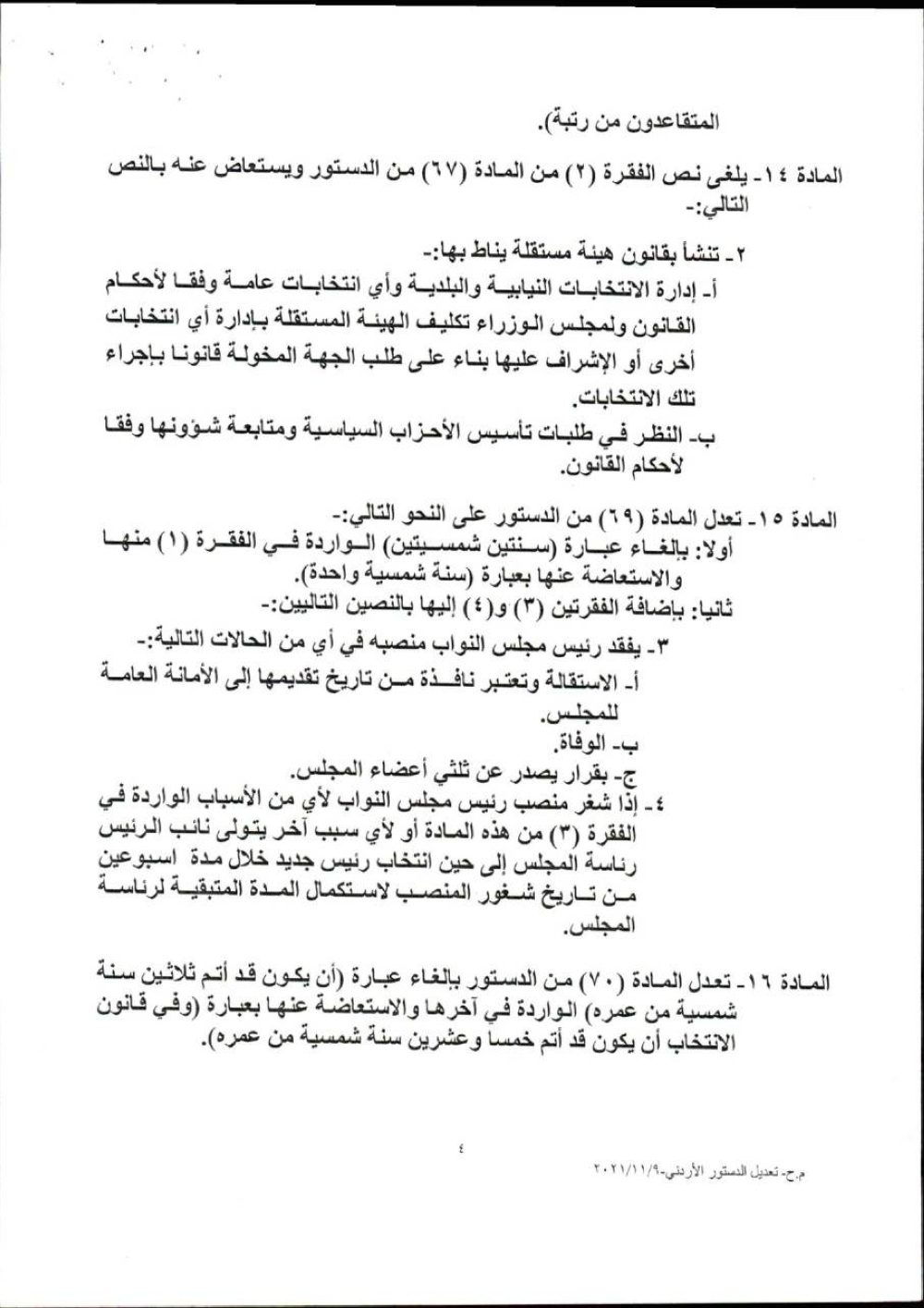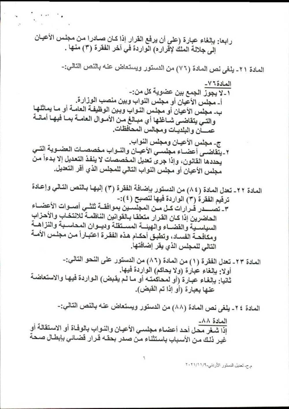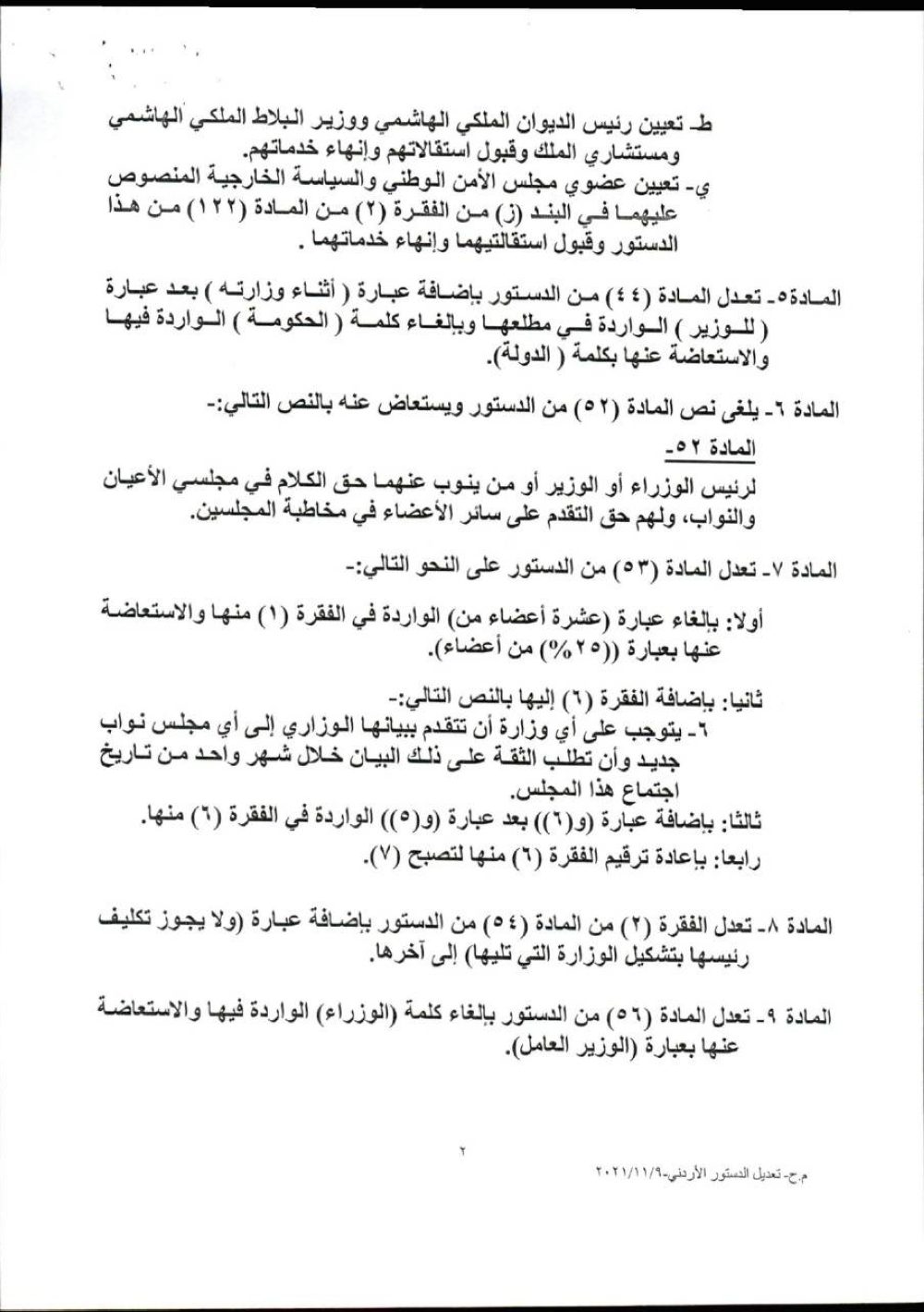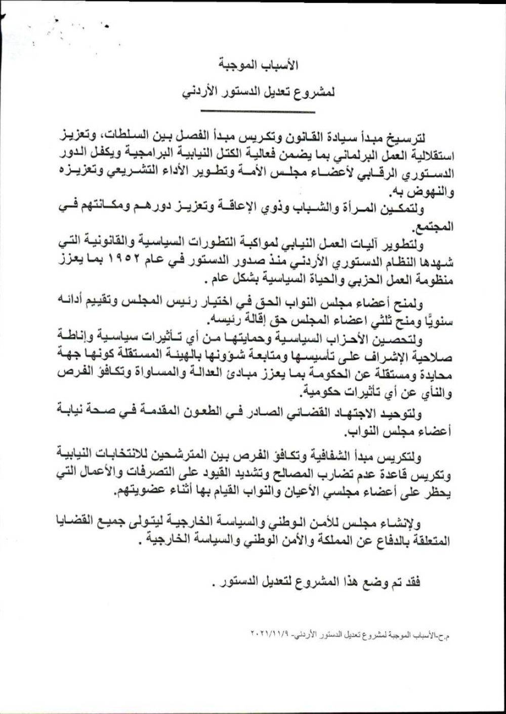 #عاجل| نص مشروع تعديل الدستور الأردني ..