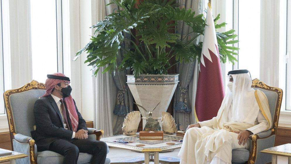 نبأ الأردن- نقل سمو الأمير الحسين بن عبدالله الثاني ولي العهد، تحيات جلالة الملك عبدالله الثاني، إلى سمو أمير قطر الشيخ تميم بن حمد آل ثاني، وتمنياته له بموفور الصحة والسعادة وللشعب القطري مزيدا من التقدم والرخاء.