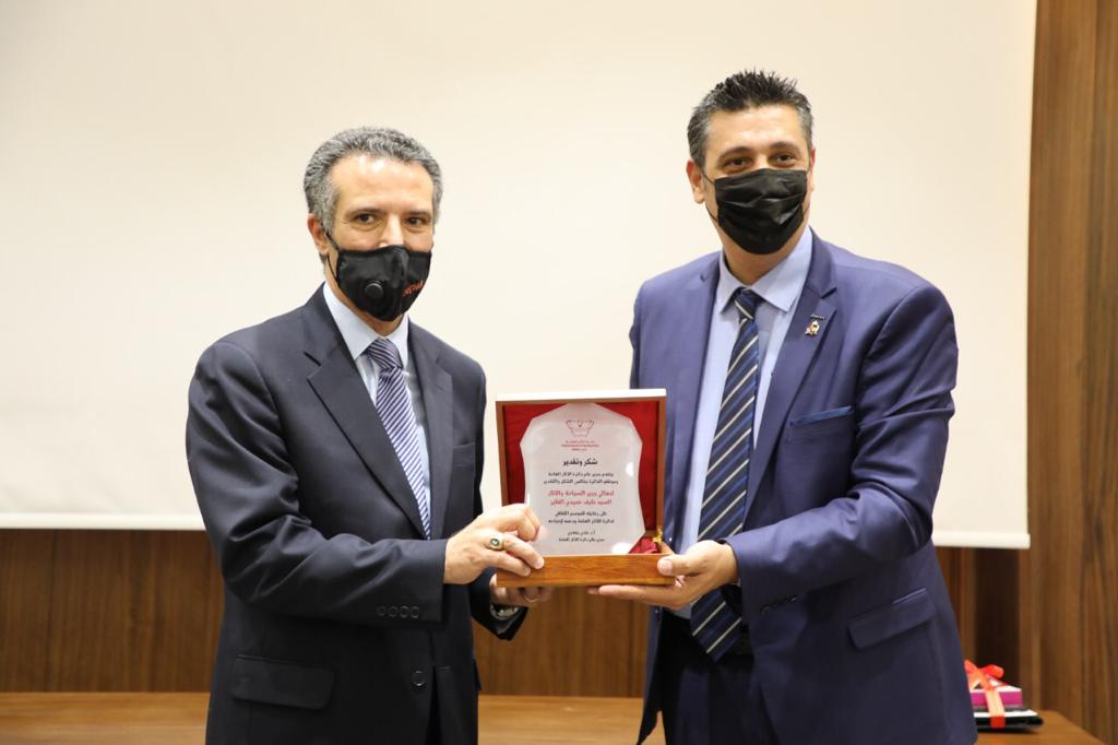 كما قدم عميد معهد فن الفسيفساء والترميم الدكتور أحمد العمايرة، دروعاً تذكارية مصنوعة من الفسيفساء للوزير الفايز، وأمين عام الوزارة الدكتور عماد حجازين، ومدير الآثار الدكتور البلعاوي، ومدير عام هيئة تنشيط السياحة الدكتور عبدالرزاق عربيات، ومستشار الوزير هشام العبادي.