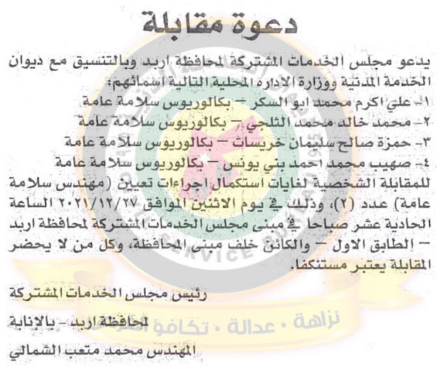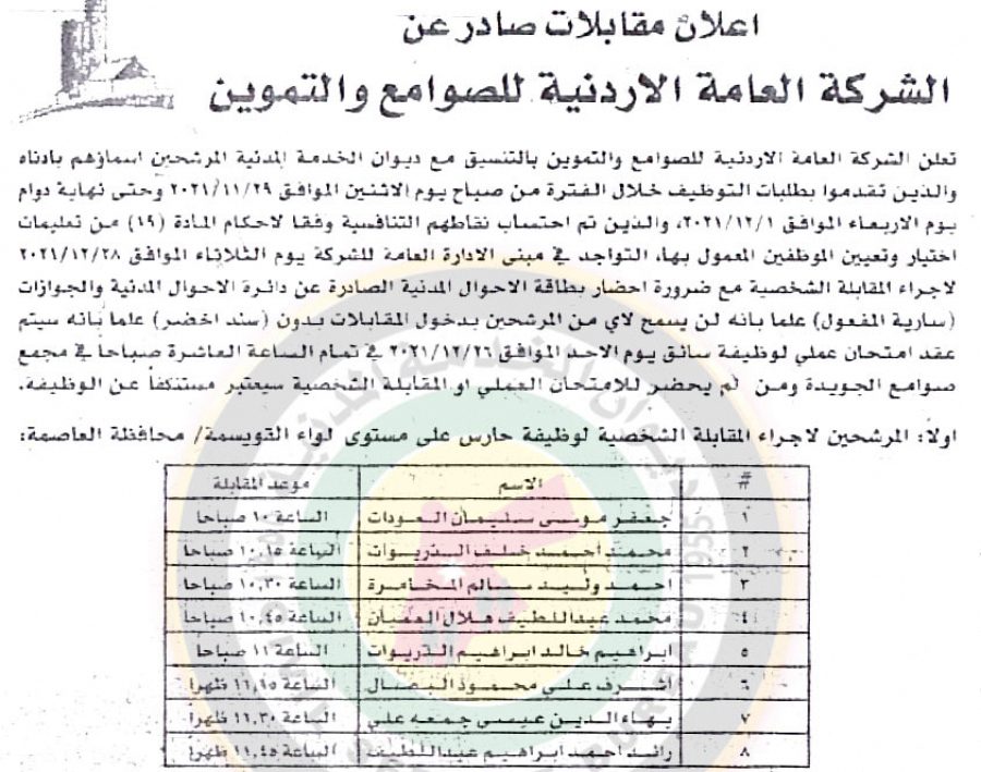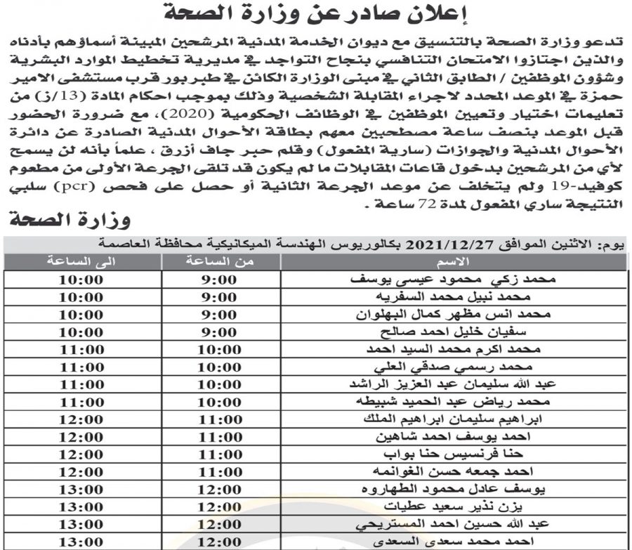 نبأ الأردن- أعلن ديوان الخدمة المدنية ، بالتنسيق مع مختلف الوزارات والمؤسسات الحكومية، عن دفعة جديدة من المرشحين للتعيين من أجل حضور الامتحان التنافسي.