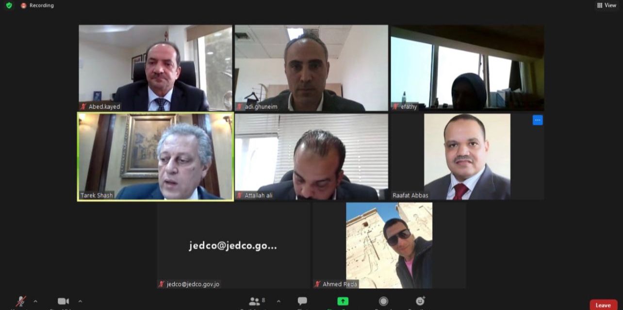 نبأ الأردن- عقدت اللجنة الفنية المنبثقة عن مذكرة التفاهم الموقعة بين المؤسسة الاردنية لتطوير المشاريع الاقتصادية JEDCO وجهاز تنمية المشروعات المتوسطة والصغيرة في مصر اولى اجتماعاتها عبر منصة زووم حيث تم مناقشة خطة العمل المقترحة من المؤسسة الاردنية لتنفيذ مجالات التعاون الواردة في المذكرة التي وقعت الشهر الماضي بالقاهرة بحضور سمو الامير الحسين بن عبدالله ولي العهد.