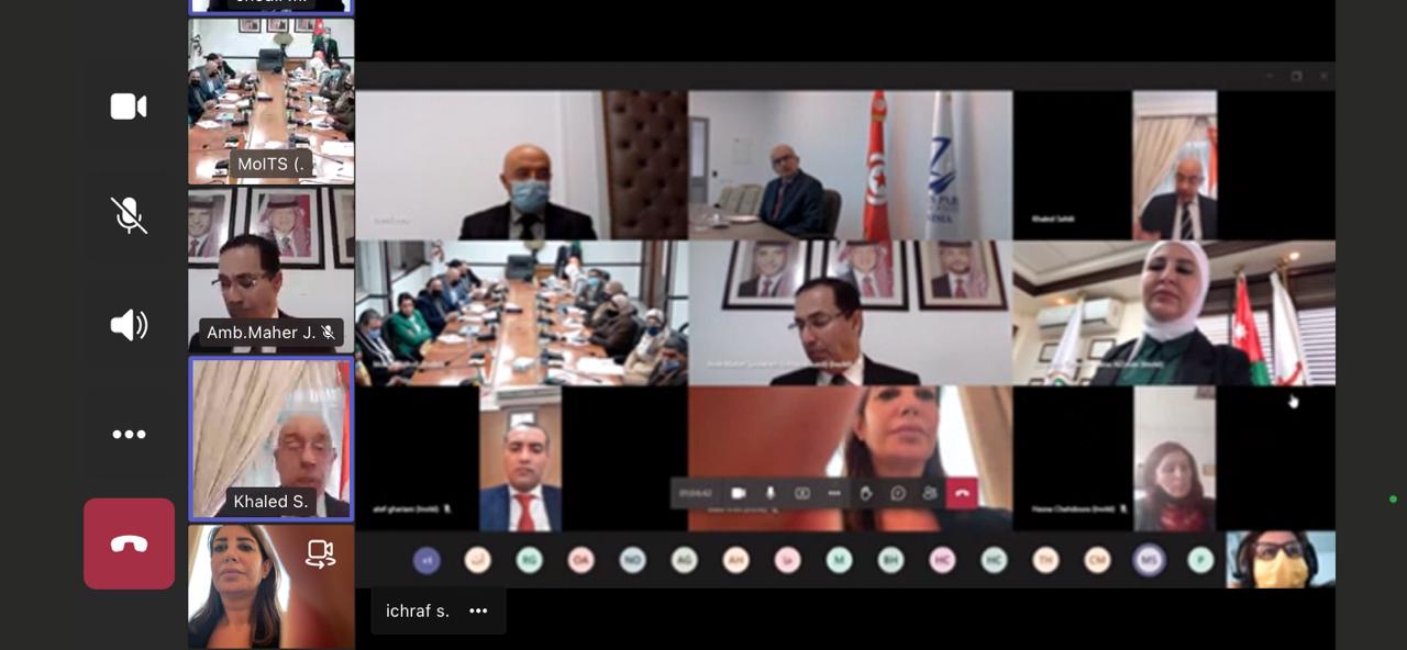 نبأ الأردن-عقدت اليوم اجتماعات الدورة الأولى للجنة التجارية الأردنية التونسية المشتركة عبر تقنية الاتصال المرئي والمسموع برئاسة الأمين العام لوزارة الصناعة والتجارة والتموين دانا الزعبي عن الجانب الأردني ورئيس ديوان وزيرة التجارة وتنمية الصادرات في وزارة التجارة وتنمية الصادرات خالد بن عبدالله عن الجانب التونسي، وبمشاركة السفير الأردني لدى تونس ماهر الطراونه وسفير جمهورية تونس لدى المملكة خالد السهيلي وعدد من المسؤولين من الجهات الرسمية من كلا البلدين.