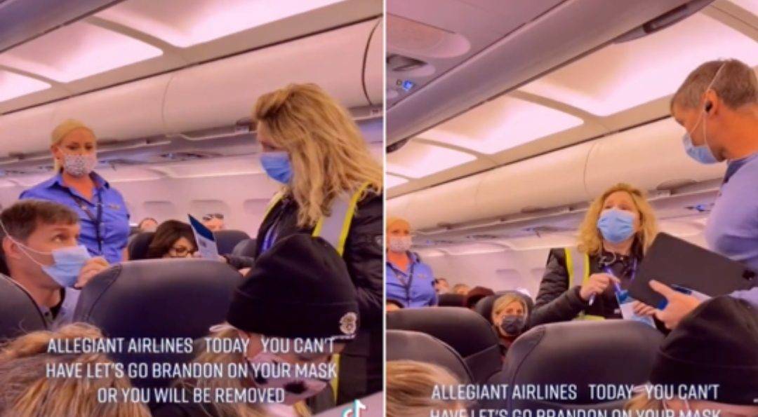 وقالت مضيفة الطيران إن القناع الطبي كان يحمل عبارة "هيا بنا براندون" ( Let's go Brandon)، وهو اتجاه شعبي على وسائل التواصل الاجتماعي يسخر من إدارة بايدن والتغطية الإعلامية للرئيس الأمريكي.