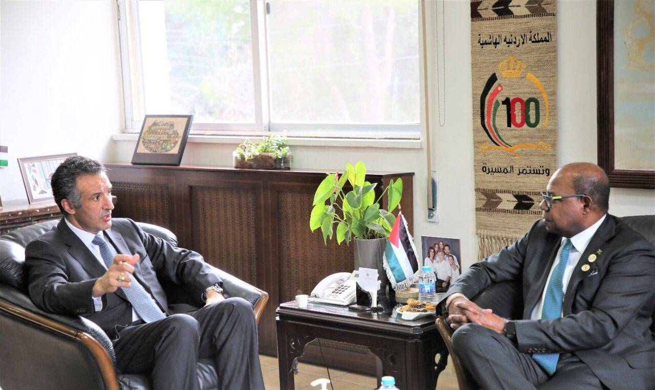 بحث وزير السياحة والآثار نايف حميدي الفايز، مع نظيره الجامايكي إدموند بارتليت، سبل تعزيز التعاون بالمجال السياحي بين البلدين، وزيادة حجم التبادل السياحي البيني بينهما.