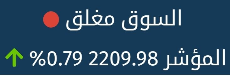 وعن مستويات الأسعار، فقد ارتفع الرقم القياسي العام لأسعار الأسهم لإغلاق هذا اليوم إلى (2209.98) نقطة، بارتفاع نسبته (0.79%).