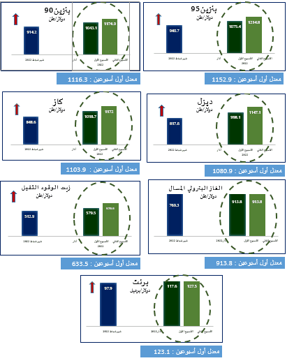وسجل سعر خام برنت في الأسبوع الثاني من الشهر الحالي سعراً بلغ 127.5 دولار للبرميل مقابل 117.6دولار المسجل في الاسبوع الاول.