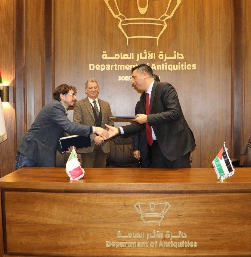 ووقع الاتفاقية في مقر الدائرة، اليوم الاثنين، بحضور وزير السياحة والآثار نايف حميدي الفايز، عن دائرة الآثار مديرها العام الدكتور فادي بلعاوي، وعن جامعة بيروجيا/ قسم العلوم الإنسانية ممثلها الدكتور أندريا بولكارو.