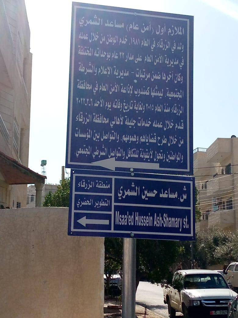 اطلاق اسم المرحوم الملازم اول مساعد الشمري على شارع في الزرقاء