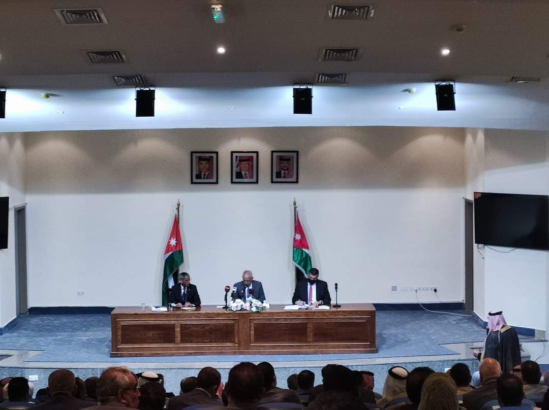 التقى رئيس الديوان الملكي الهاشمي يوسف العيسوي يلتقي أبناء المفرق في جامعة آل البيت..