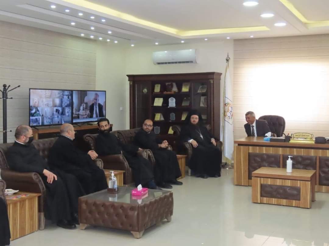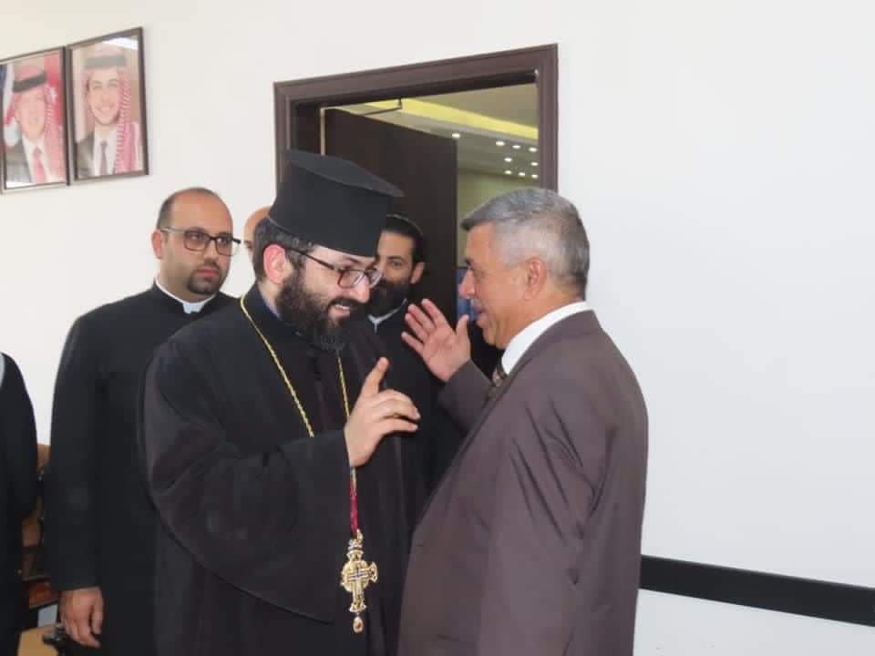 الوكيل البطريركي للروم الأرثوذكس ورعايا الكنائس المسيحية في مادبا يزورون البلدية مادبا الكبرى مهنئين