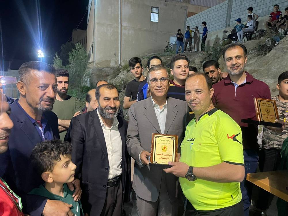 نبأ الأردن - الكرك - كتب د.محمد المعايطة - اختتمت مساء الجمعة ٤/٢٩ فعاليات بطولة المرحوم سعدي البستنجي أحد رؤوساء النادي السابقين ؛ برعاية كريمة من سعادة رئيس بلدية الكرك الكبرى المهندس محمد المعايطة ؛ حيث وصل إلى المباراة النهائية عن فئة الصغار ؛ فريقي أشبال المنشية وفريق الكابتن وسام ؛ واسفرت عن فوز فريق أشبال المنشية بنتيجة ٣:٥ ؛ وعن فئة الكبار وصل فريقي النادي والصقور ؛ واسفرت عن فوز فريق النادي بالضربات الترجيحية ؛ وقد سلم راعي الحفل الكؤوس والميداليات على مستحقيها كما وسلم دروع للحكام ولأبناء المرحوم سعدي ؛ ومن ثم تم تكريم راعي البطولة من إدارة النادي وقد سلمه نيابة عن النادي وأهل البلدية رئيس المجلس المحلي عن منطقة المنشية السيد طلال البستنجي ؛ وفي نهاية هذا اللقاء شكر راعي الحفل إدارة النادي عن هذه الفعاليات النوعية ؛ كما وذكر مناقب الفقيد ووعد بإعطاء منطقة المنشية أولوية خاصة باعتبارها أفضل منطقة رافدة للبلدية وتشكل لوحة فسيفسائية جميلة من خلال التنوع السكاني فيها ؛ وقد تحدث أمين السر السيد هاني البستنجي عن رسالة النادي في المجتمع ؛ وذكر جانباً من إنجازات النادي خلال الأشهر الماضية ؛ وفي الختام شكر رئيس النادي السيد فايز البستنجي ؛ رئيس البلدية على إهتمامه وتفاعله مع أنشطة الحركة الرياضية على مستوى المحافظة وعلى مستوى نادي المنشية بشكل خاص