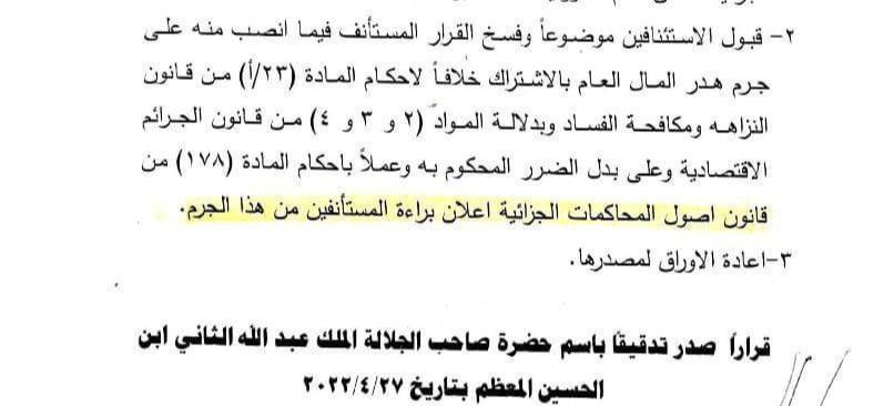 واصدرت محكمة الاستئناف قرارها في تاريخ 27/4/2022 اعلنت فيه براءة اعضاء المجلس البلدي الحالي وهم نايف الدعجة وفاطمة عادي ومحمد ذيب الزواهرة وفتحي الخلايلة وزياد الحنيطي ومحمد ابو صعيليك.