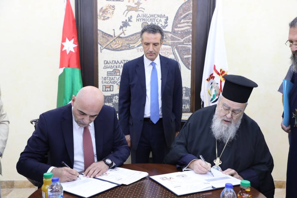 نبأ الأردن- وقعت هيئة تنشيط السياحة الأردنية وكنيسة اليونان الممثلة في المجمع المقدس، في موقع المغطس، اليوم الاحد، اتفاقية "مشروع بروتوكول تعاون"، في مجالات السياحة والثقافة، بحضور وزير السياحة والآثار رئيس مجلس إدارة هيئة تنشيط السياحة نايف حميدي الفايز.