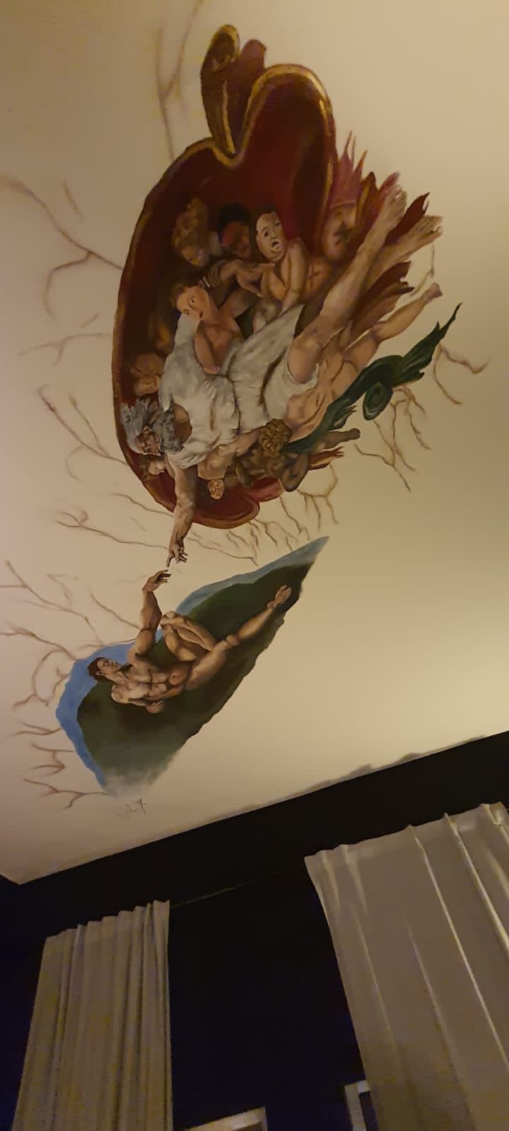وإذا انتقل الزائر للصالة ينبهر بجمال الألوان ولوحات مرح المعروضة للبيع وفي حين قرر مواصلة اكتشاف كوكب الفن من خلال الأبواب الخشبية الواسعة ينتقل الى استديو التصوير الحديث وصالة الرسم والتي رسم على سقفها لوحة بغاية الجمال تعيدنا الى الفن الكلاسيكي ويتابع الزائر رحلته بممرات وصالات تزينها ابداعات فارس الفتوغرافية واكتشاف المزيد والمزيد من أماكن الفنون والاشغال اليدوية وكل زاوية هناك تروي حكايتها وتنفرد بشخصيتها وزمنها وطريقة إخراجها.