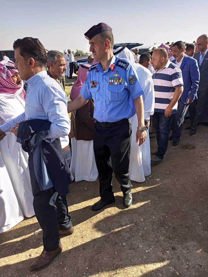 وشـارك في تشييـع الجثمـان قائـد شرطـة الباديـة الملكيـة العميـد صادق العـوران ونائـب مديـر شرطـة الباديـة الوسطـى ، وعدد من ضباط وضباط صف وأفراد مديريـة الأمـن العـام .