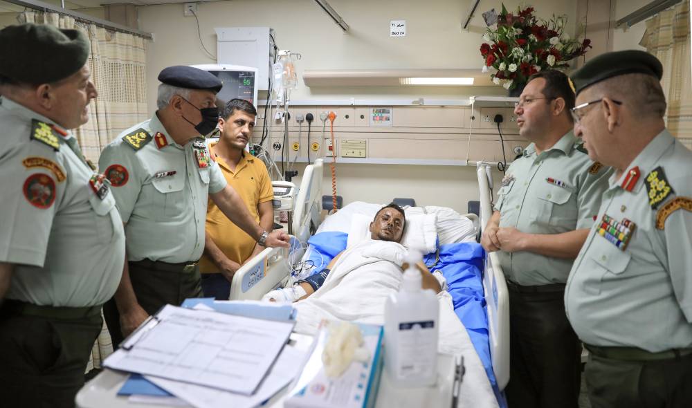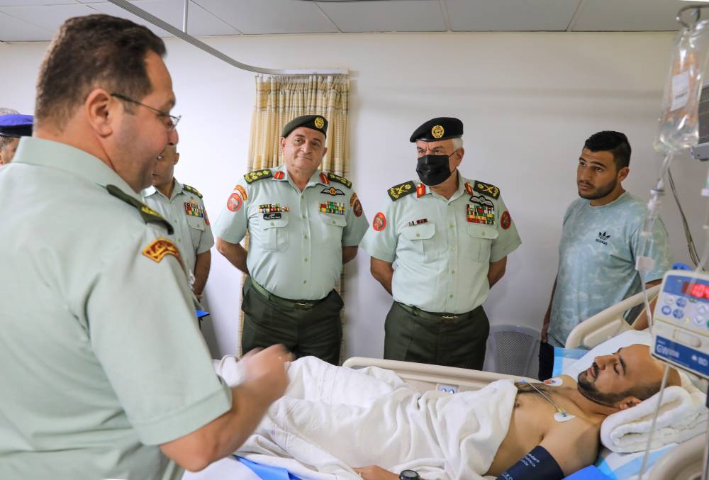 واطمأن اللواء الركن الحنيطي على الحالة العامة للمصابين، موجهاً بتقديم كافة أشكال الرعاية الصحية والعلاجية اللازمة ومتمنياً الشفاء العاجل لهم.