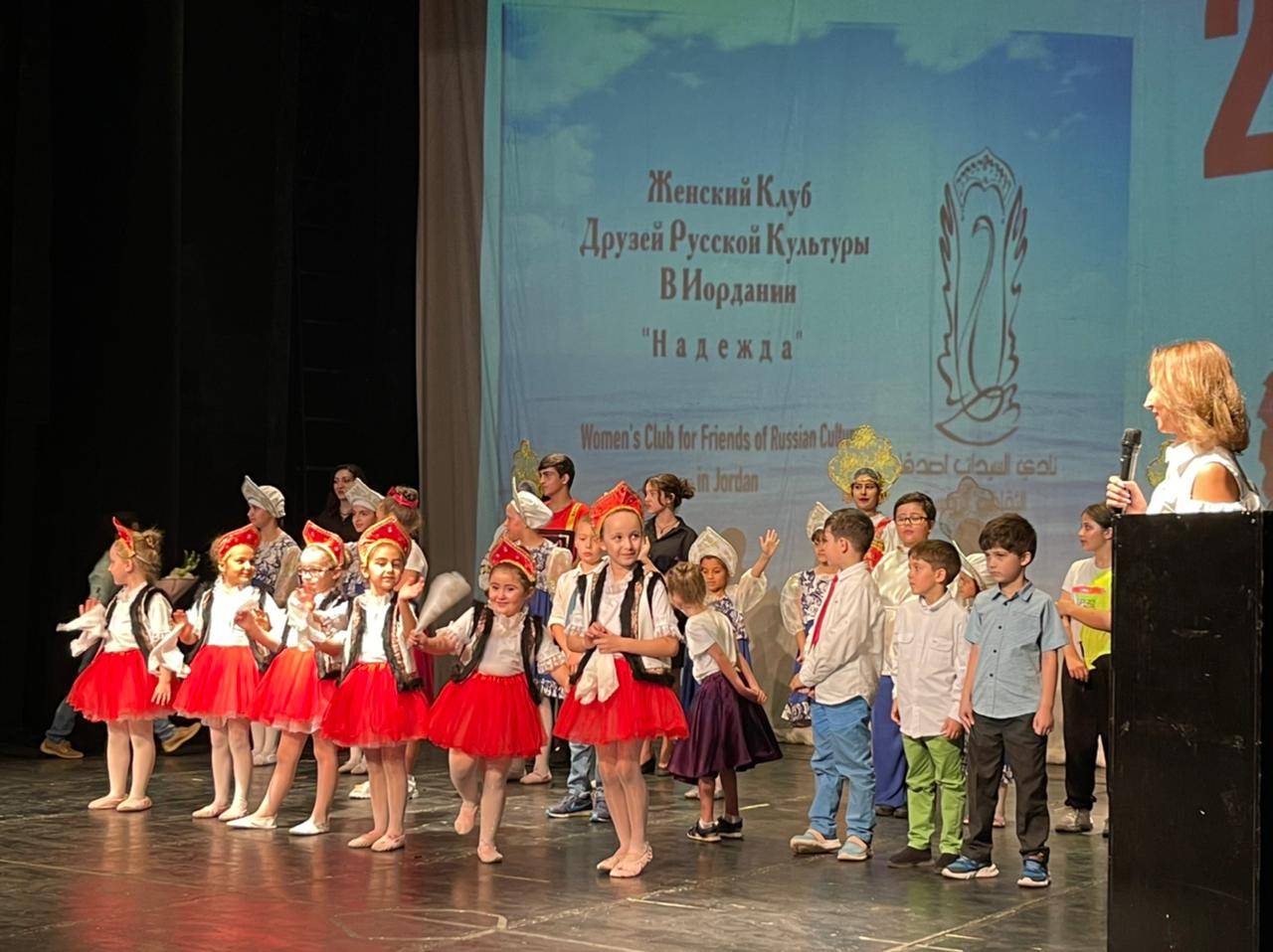 نبأ الأردن ـ يلينا نيدوغينا - تميَّز الاحتفال الكبير بالذكرى الثانية لتأسيس منتدى "ناديجدا" للسيدات صديقات الثقافة الروسية، على "مسرح الشمس"، بحضور أردني وروسي ومتعدد القوميات كثيف، من مواطني شتى جمهوريات "الاتحاد السوفييتي" السابق، وأصدقاء الثقافة الروسية في المملكة الأردنية الهاشمية، ورجالات الثقافة والأدب والإعلام.