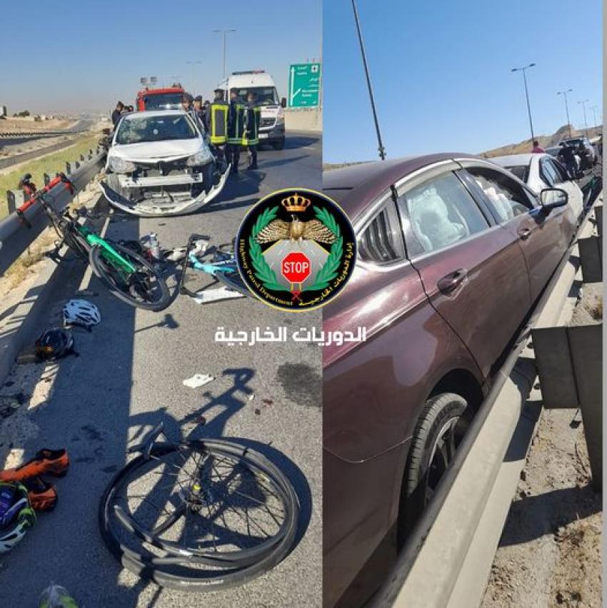 نبأ الأردن - تعاملت الدوريات الخارجية صباح اليوم مع حادث تصادم بين مركبتين و5 دراجات هوائية ما بعد جسر الموقر باتجاه الزرقاء، نجم عن الحادث 5 إصابات تم اسعافهم الى المستشفى وحالتهم العامة متوسطة.