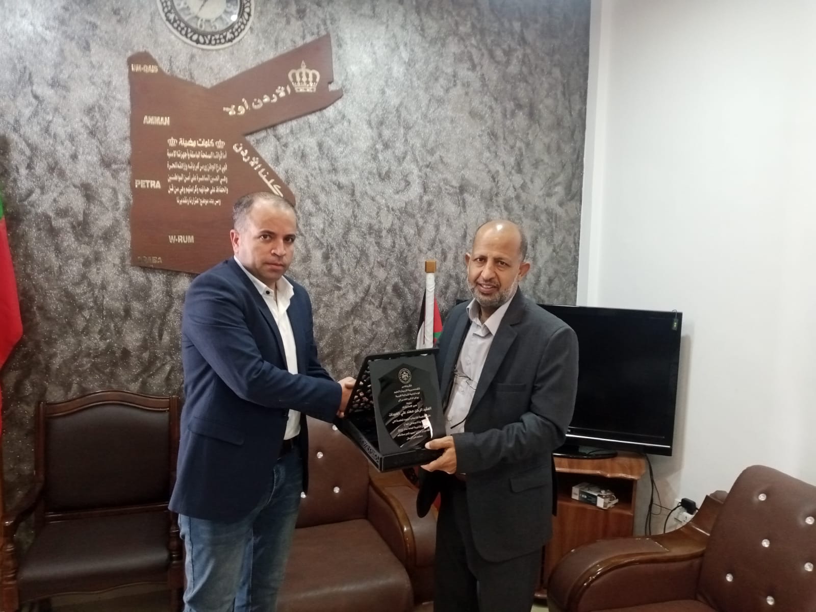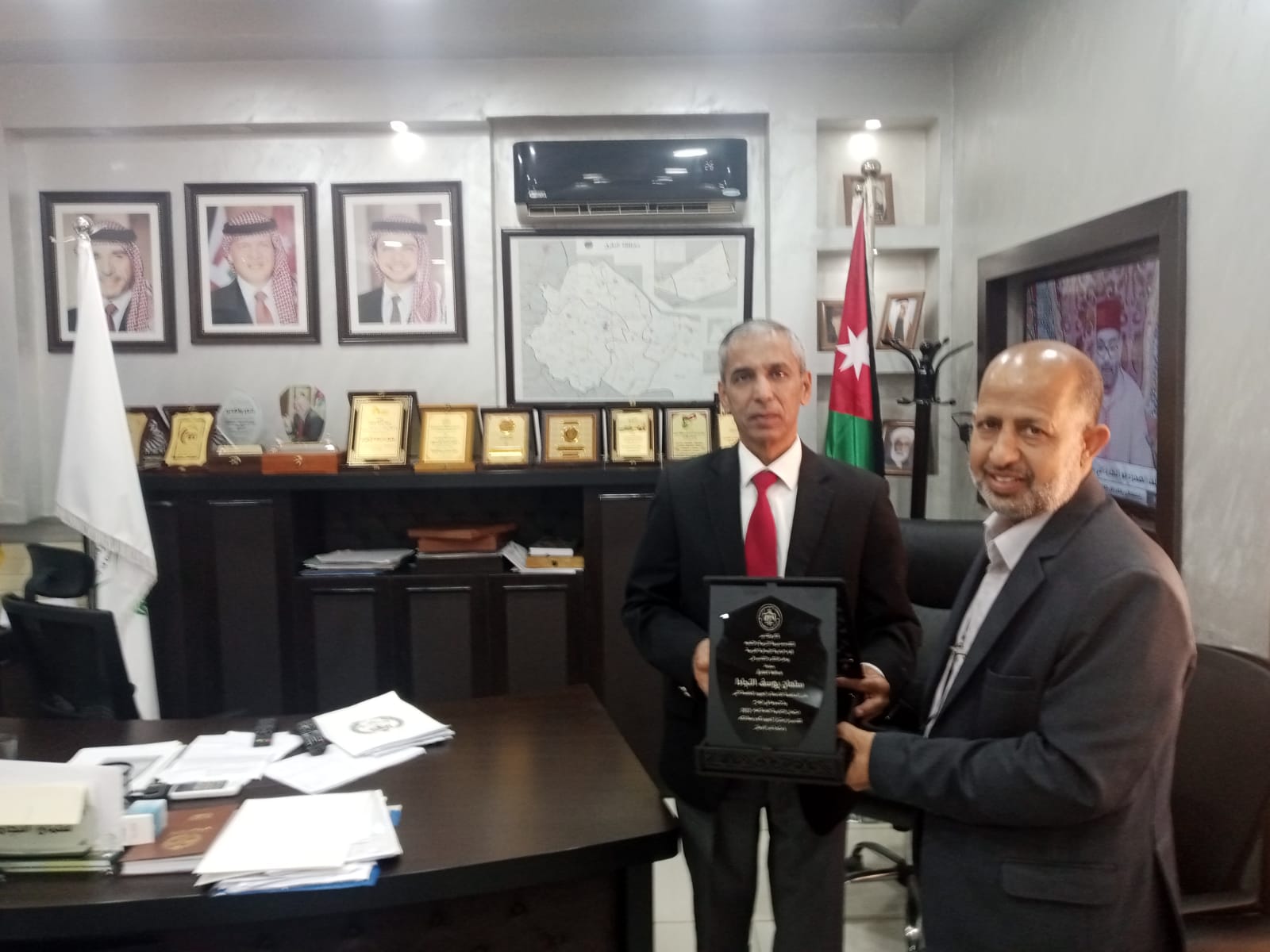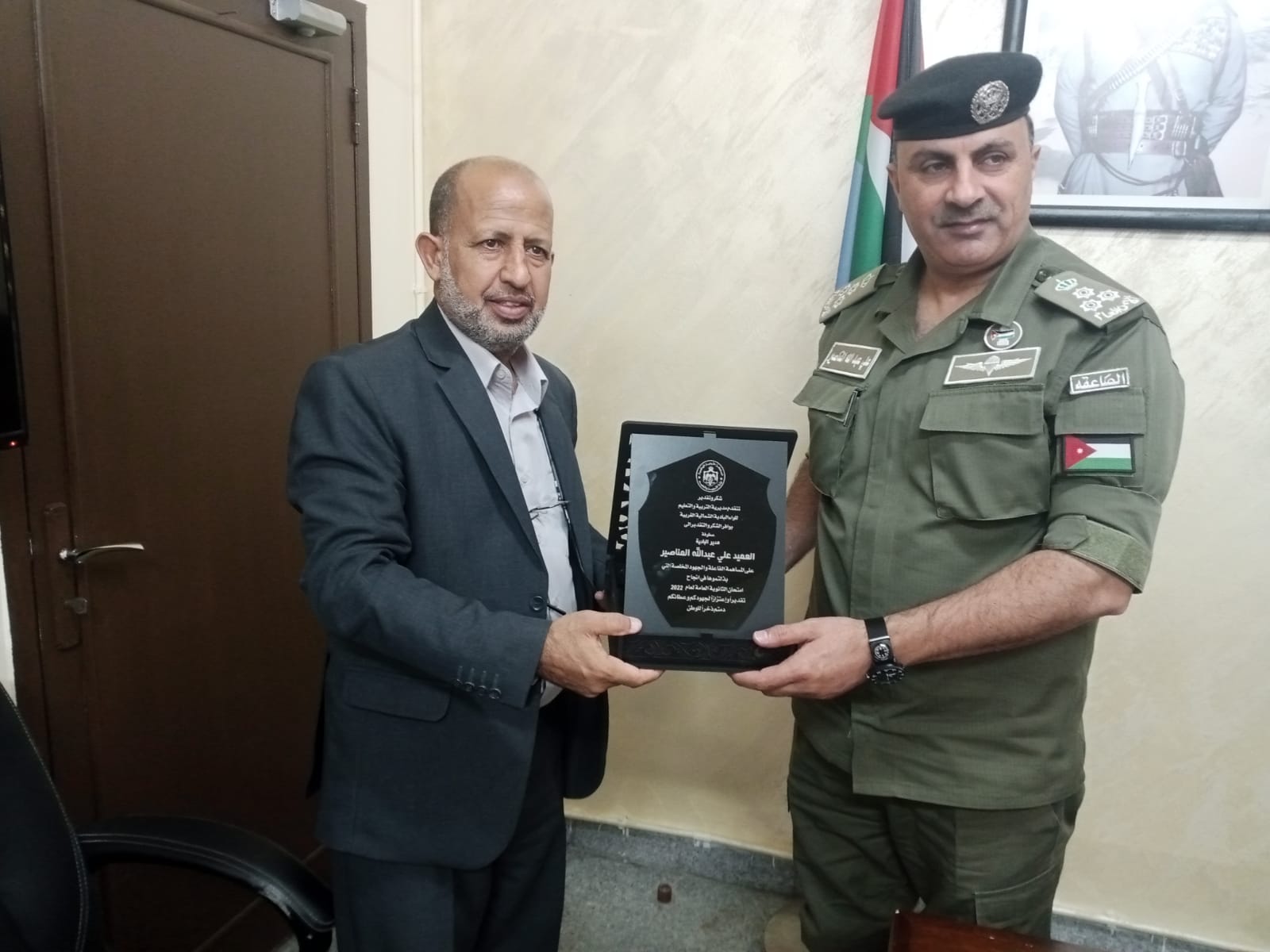 نبأ الأردن - قام مدير التربية والتعليم للواء البادية الشمالية الغربية الدكتور علي المزاودة بتقديم درع تكريمي لمحافظ المفرق سلمان النجادا تعبيراً عن شكر مديرية التربية والتعليم للواء البادية الشمالية الغربية لمحافظ المفرق وتثمينها لدوره الكبير في إنجاح امتحانات الثانوية العامة ، والتنسيق مع الأجهزة الأمنية في المحافظة لتقديم أقصى درجات الدعم لمديرية التربية والتعليم ، ووضع خطة متكاملة لضمان سير الأمتحانات بأفضل صورة والحيلولة دون حدوث ما يخل بأمن الامتحانات وسلامتها .