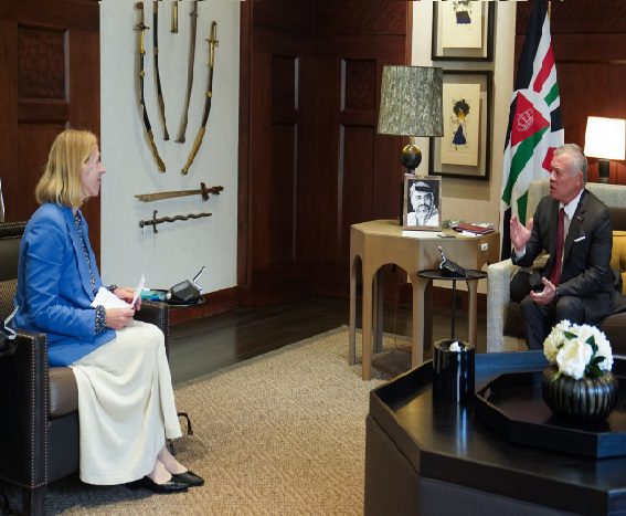 وتطرق اللقاء إلى المستجدات الإقليمية والدولية، وفي مقدمتها القضية الفلسطينية، إذ أكد جلالته ضرورة تكثيف الجهود للتوصل إلى سلام عادل وشامل على أساس حل الدولتين، بما يضمن قيام الدولة الفلسطينية المستقلة على خطوط الرابع من حزيران عام 1967، وعاصمتها القدس الشرقية.