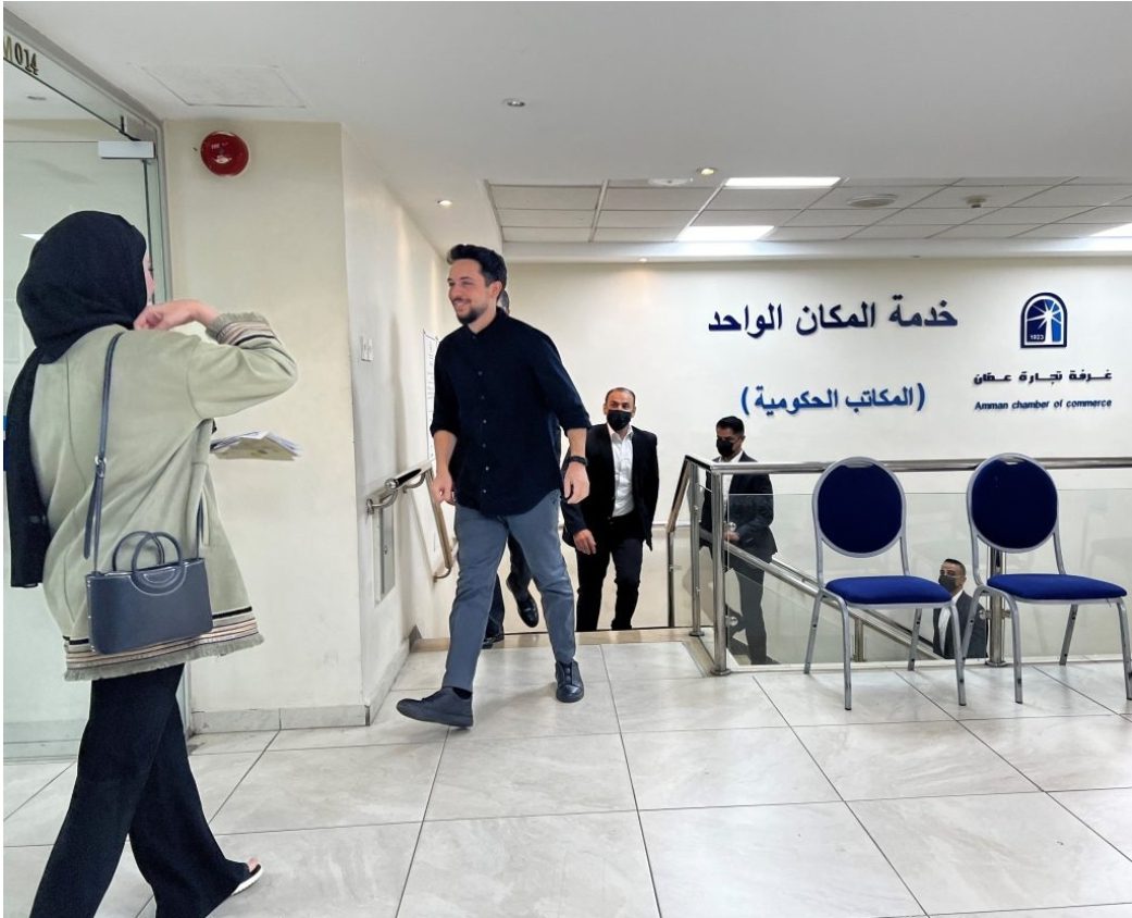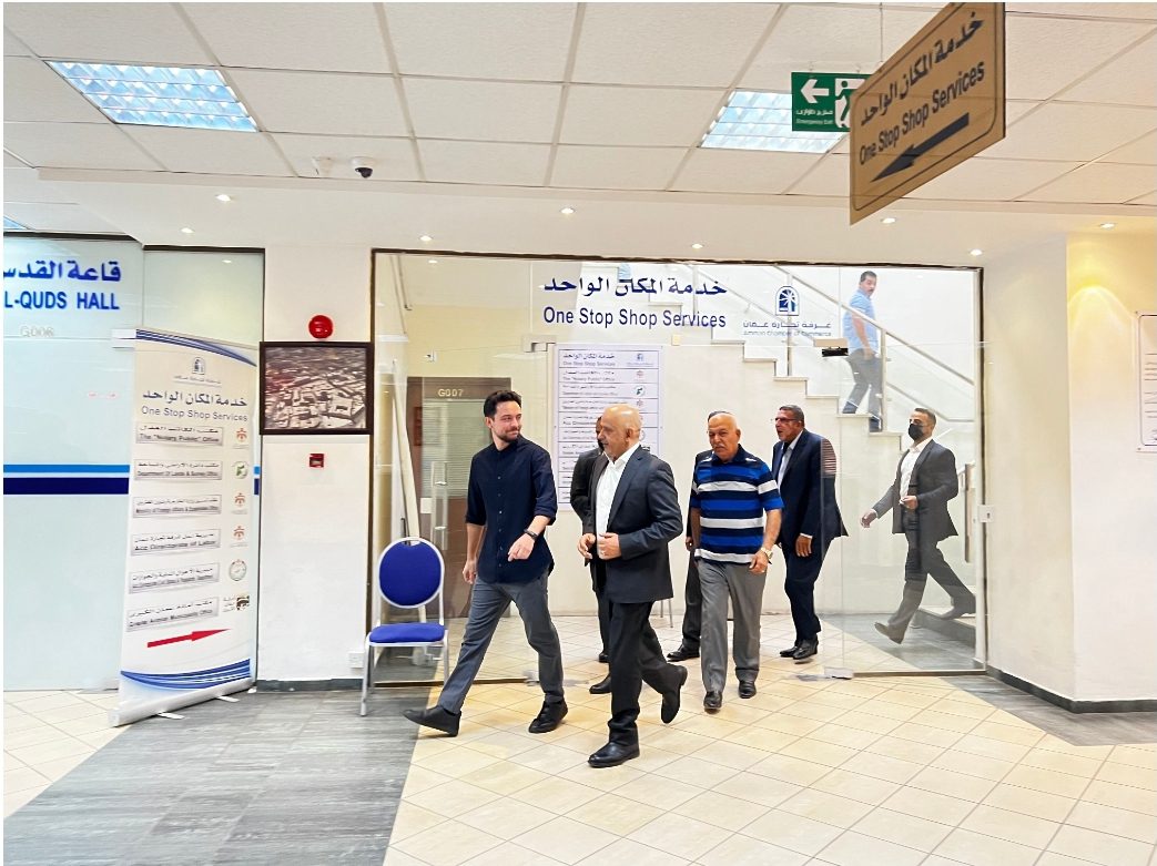 ولي العهد يزور مقر خدمة "المكان الواحد" في غرفة تجارة عمّان (صور)