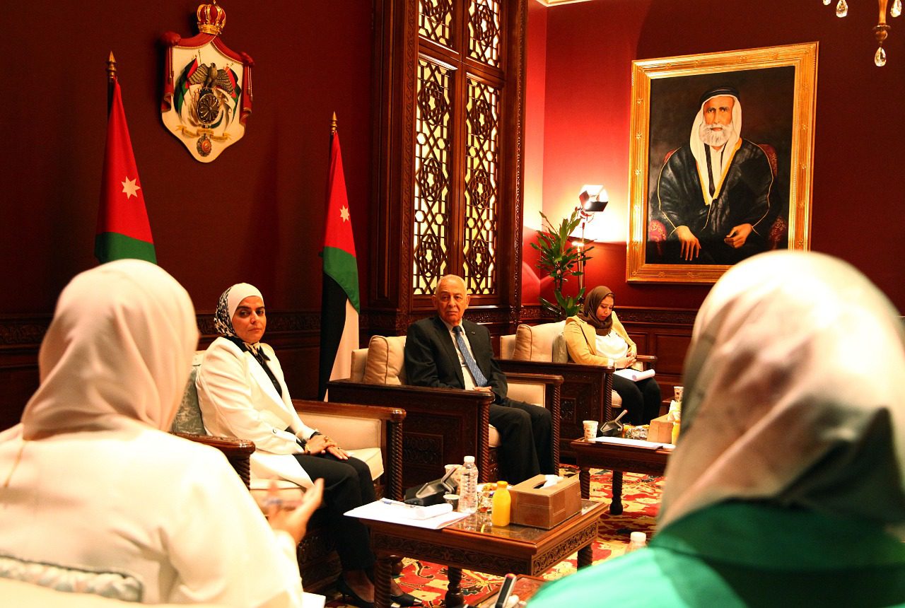 نبأ الأردن- التقى رئيس الديوان الملكي الهاشمي السيد يوسف حسن العيسوي في قصر بسمان الزاهر مع سيدات المجتمع المحلي في محافظة العقبة كما ترأس الوفد سعادة النائب تمام الرياطي.