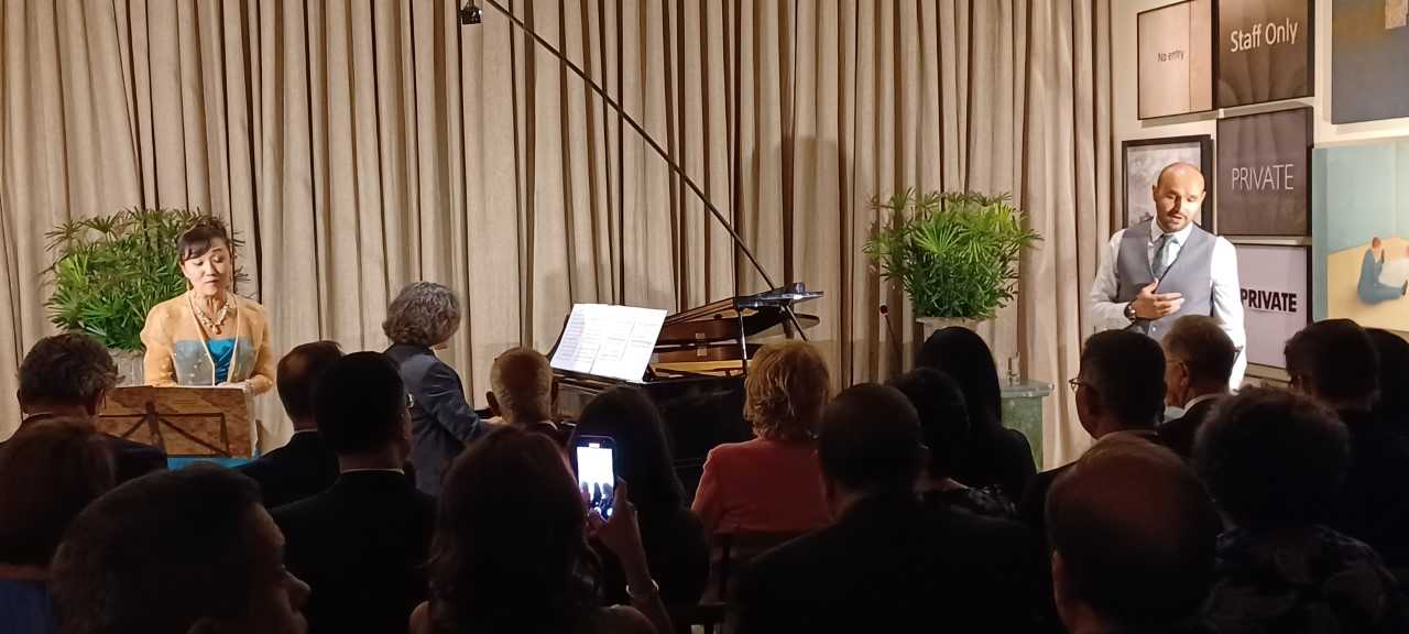 نبأ الأردن- أحيا عازف البيانو والمؤلف الموسيقي الايطالي المايسترو ماركو موروني حفلا موسيقيا من أعمال المؤلف الموسيقي البرازيلي هيتور فيلا لوبوس (1887-1959)، وصاحبه في الغناء الأردنيان الأوبرالي السوبرانو كاكو حداد والتينور عدي النبر، وذلك مساء أمس الخميس في مقر اقامة السفير البرازيلي لدى الأردن.
