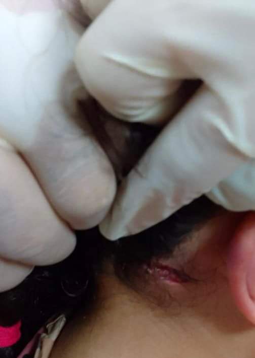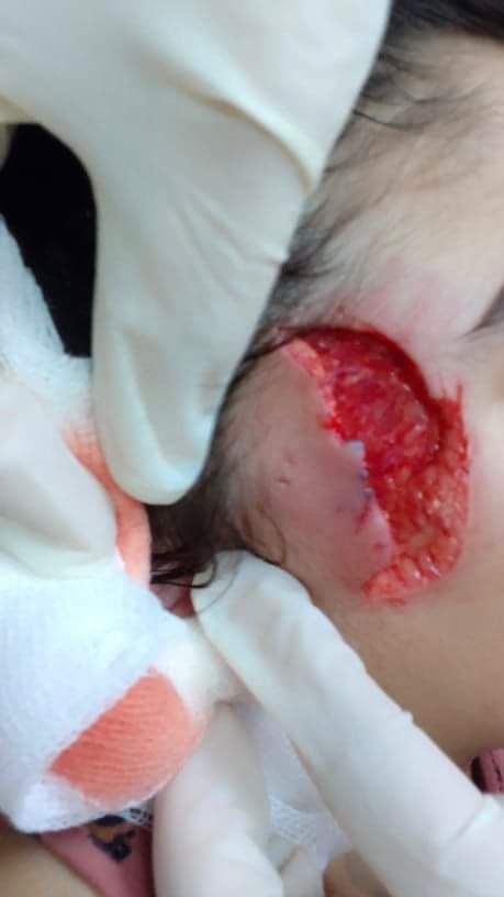 عقر الكلاب لهذه الطفلة تسبب لها بجرح قطعي خلف منطقة الأذن، وبعمق 10 سم، وهذه المنطقة خطيرة جداً وتعرضها لمثل هذا الجرح يمكن أن يؤدي الى الوفاة.