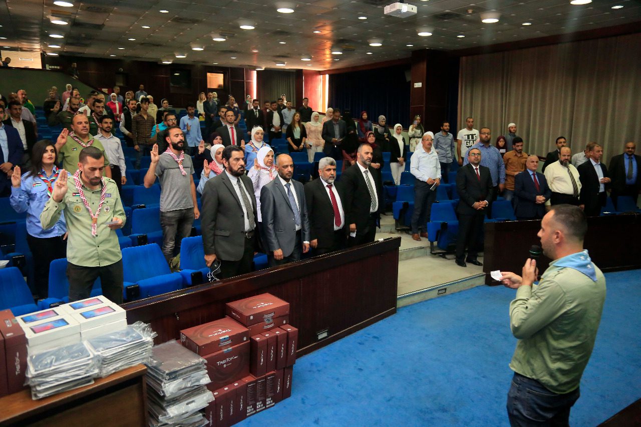 أقامت وزارة المياه والري/ سلطة المياه بالتعاون مع الوكالة الالمانية GIZ حفلا تكريميا لعدد من عمداء و اساتذة وطلبة كليات الشريعة في الجامعات الاردنية وجمعية الكشافة والمرشدات المشاركين في مسابقة مشروع (نحو توعية شبابية في مجالات المياه والنظافة والصرف الصحي) بحضور أمين عام وزارة المياه والري الدكتور جهاد المحاميد وعدد من مسؤولي المياه . وجاء ذلك في اطار مشروع (تحسين كفاءة استخدام المياه المجتمعي بالتعاون مع الهيئات الدينية) المنفذ من قبل وزارة المياه والري / سلطة المياه و الوكالة الألمانية GIZ، الممول من الوزارة الإتحادية الألمانية للتعاون الإقتصادي والتنمية BMZ بهدف نشر رسالة التوعية المائية وتوفير المياه باستخدام الأدلة الدينية بالتعاون مع الهيئات الدينية الإسلامية والمسيحية منها وزارة الأوقاف والشؤون والمقدسات الإسلامية ووزارة التربية والتعليم ودائرة الإفتاء العام والكنائس المسيحية والجامعات وكليات الشريعة في الجامعات الأردنية اضافة الى جمعية الكشافة والمرشدات الاردنية.