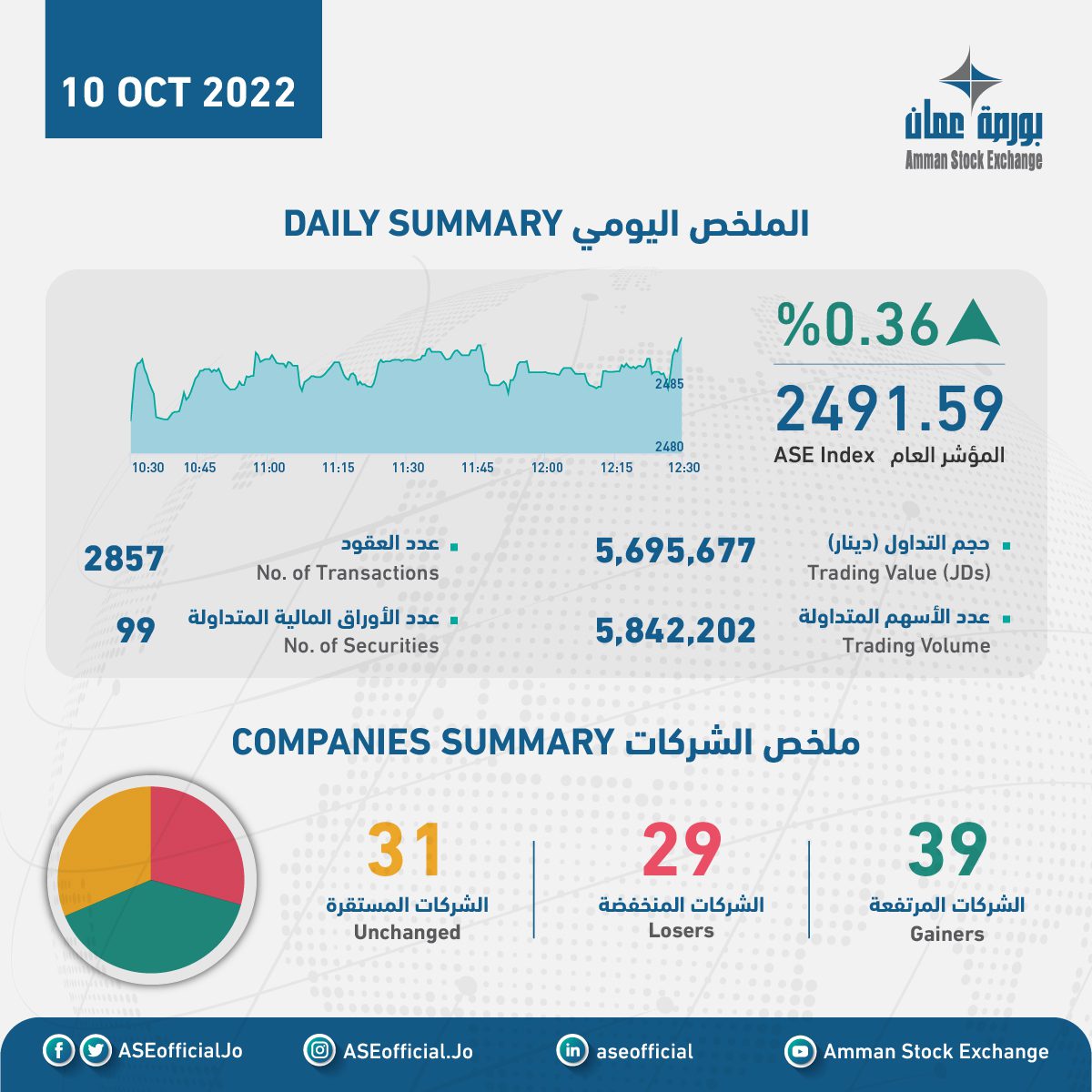 الملخص اليومي لبورصة عمان