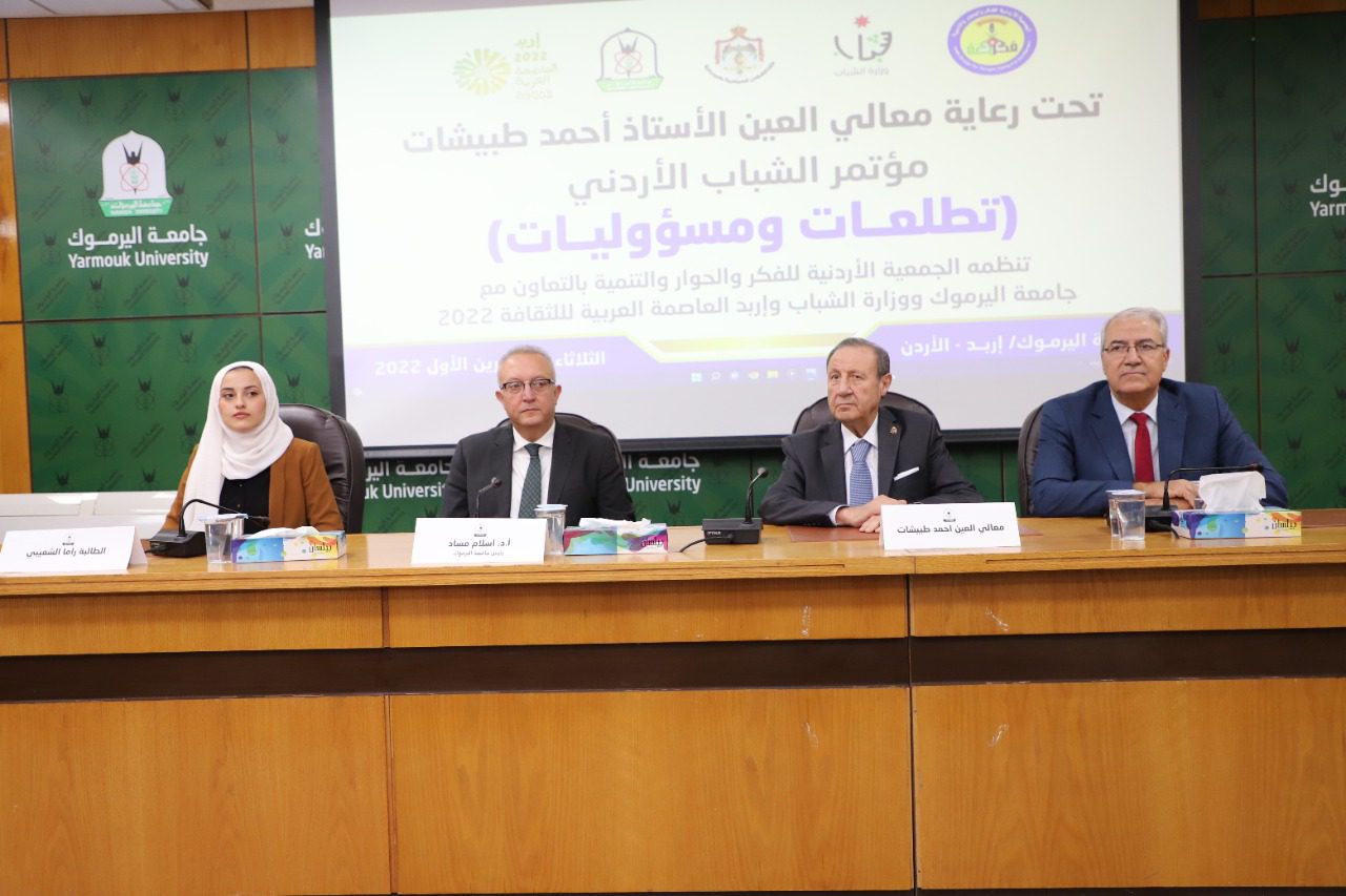 ودعا الشباب إلى أن يكونوا على قدر من المسؤولية، وأن يضطلعوا بدورهم في بناء وتطوير مجتمعهم ووطنهم لدفع عجلة التنمية فيه نحو الأفضل، مثمناً جهود الجمعية الأردنية للفكر والحوار والتنمية وجامعة اليرموك لعقدها هذا المؤتمر الشبابي الذي ينعكس على تطوير المجتمع الأردني .