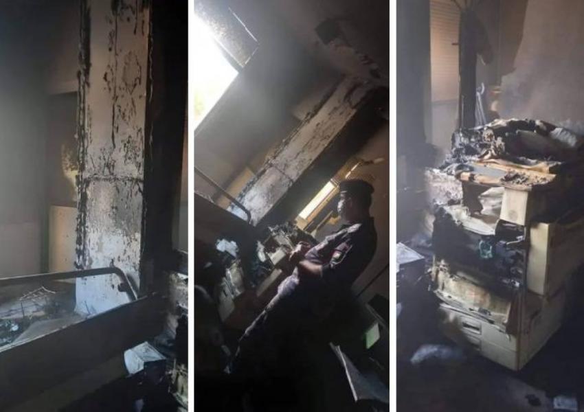 نبأ الأردن-تعاملت كوادر الدفاع المدني في إربد مع حريق كبير شب داخل مجمع النقابات المهنية، الأربعاء..