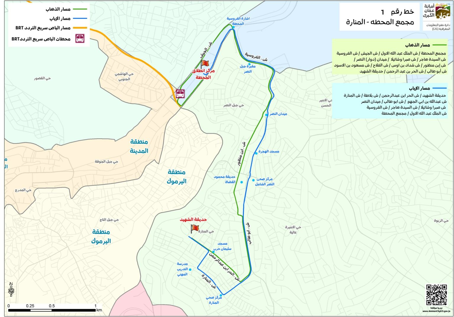 نبأ الأردن- نشرت أمانة عمّان الكبرى مسار خطّي الباص سريع التردد في العامصة عمّان.