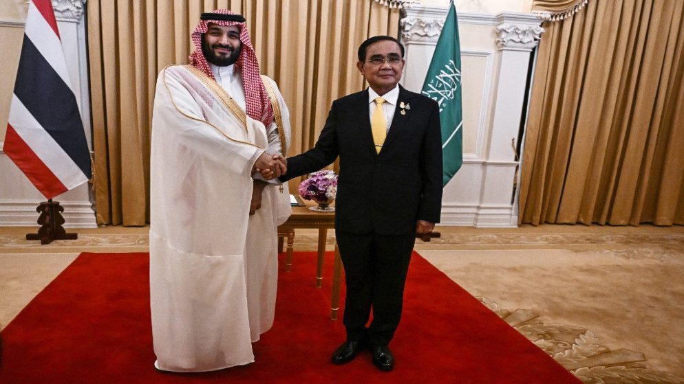 نبأ الأردن- التقى رئيس الوزراء التايلاندي مع ولي العهد السعودي الأمير محمد بن سلمان الجمعة، في بانكوك ووقعا اتفاقيات لتعزيز العلاقات الدبلوماسية التي استؤنفت هذا العام وذلك بعد أكثر من 30 سنة من خفض السعودية علاقاتها مع بانكوك بسبب سرقة مجوهرات.