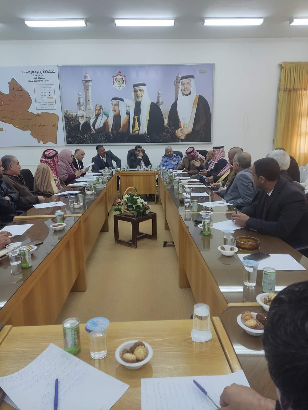 و أشار الفايز خلال تراسه اجتماع المجلس التنفيذي للواء المزار الجنوبي بحضور مدير شرطه الكرك و عدد من مدراء الدوائر الحكومية ورئيسي بلديتي مؤتة والمزار الجنوبي قضاء مؤاب الجديده اهمية توحيد الجهود المبذولة لتسهيل عملية الخدمه وسرعة الوصول الى المواطن وتكامل الادوار لافتا الى ان اجواء الأمن والأمان التي ينعم بها الوطن تحتم علينا جميعا ان نكون محل ثقه المواطن كحاكمية اداريه ومنظومه امنية متكامله ودوائر خدمات متعدده لافتا الى اهميه معالجه بعض الاختلالات والتخفيف من معاناه المواطنين وخاصه ضمن حدود البلديات وفي الشوارع المكتظه وازالة الاعتداءات على الارصفه لتسهيل حركة المواطنين