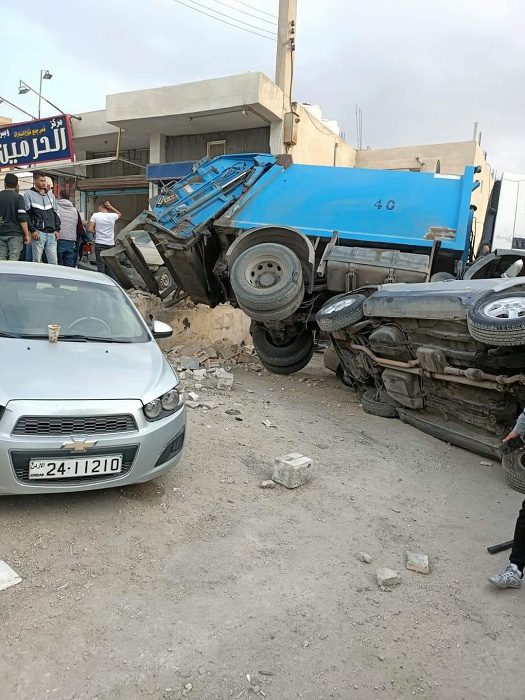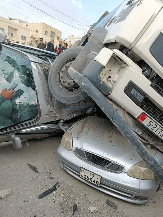 نبأ الأردن-وقع حادث سير مُروع بين شاحنة كبيرة اصطدمت مساء اليوم بعدد من المركبات قرب مثلث عوجان عند نزول حراج الزرقاء.