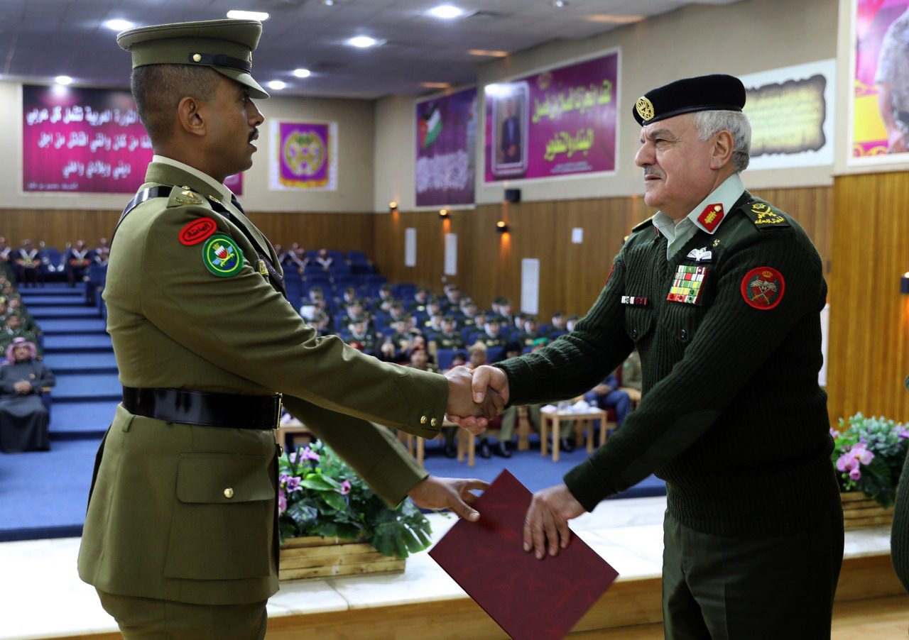 ودعا اللواء الركن الحنيطي الخريجين إلى التقيد بالضبط والربط العسكري والتحلي بروح المسؤولية، والعمل بهمة عالية وبذل الغالي والنفيس من أجل الدفاع عن الوطن والحفاظ على أمنه واستقراره.