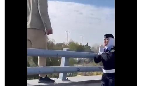 نبأ الأردن-وثق فيديو قصير نجاح "شرطية" من كوادر إدارة السير، في إقناع شاب بالعدول عن إلقاء نفسه من أعلى جسر في عمان.