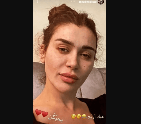 نبأ الأردن-نشرت الفنانة اللبنانية نادين الراسي صورة لها من داخل منزلها فى أحدث ظهور لها عبر حسابها علي موقع التواصل الاجتماعي “انستجرام” وظهرت نادين الراسي بدون مكياج بوجه شاحب يبدو عليه التعب وبشرة باهتة، كما بدت الهالات السوداء ظاهرة حول وجهها، وهو ما تخفيه دائما بالمكياج، وانهالت عليها التعليقات.