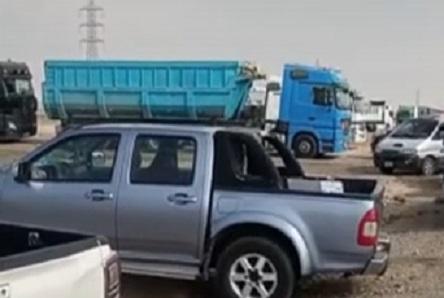 وأظهر الفيديو الذي رصده موقع "خبرني" تواجد أصحاب الشاحنات بأعداد كبيرة مضربين عن العمل.