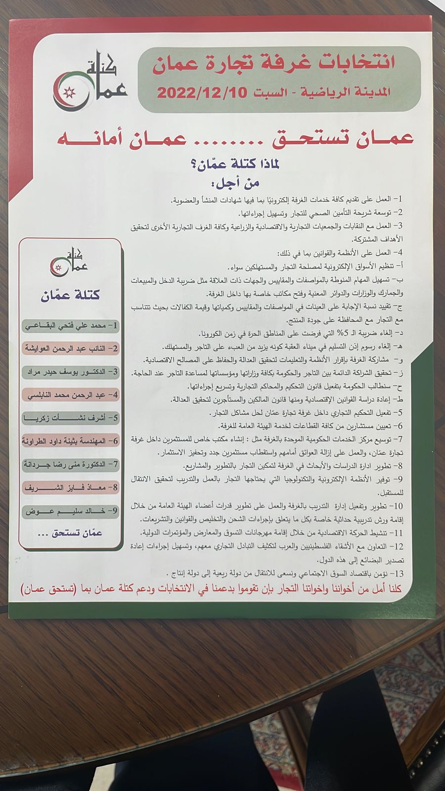 وتاليا البرنامج الانتخابي لكتلة عمان، والذي تتقدم من خلاله الى الهيئة العامة لتكسب ثقتها، الأغلى :