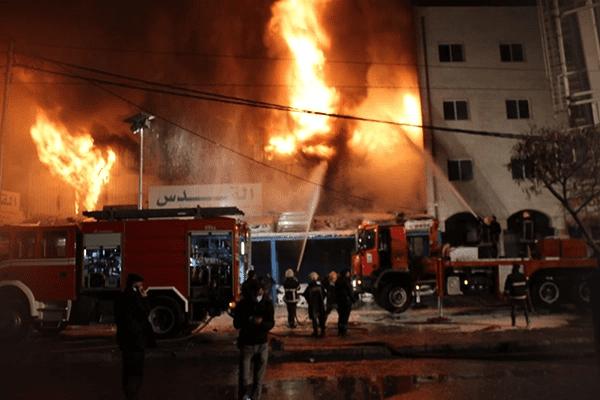 إذ بذلت فرق الإطفاء جهوداً كبيرة في عملية إخماد الحريق والتي استمرت لمدة سبع ساعات متواصلة لمنع امتداده للمحلات المجاورة .
