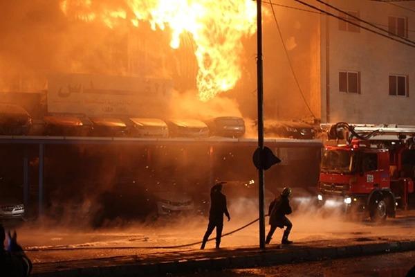 فيديو جديد من حريق مستودع قطع السيارات بإربد