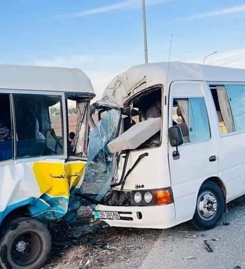 نبأ الأردن-تعاملت كوادر السير والدفاع المدني صباح اليوم الاثنين، مع حادث تصادم بين حافلتين على طريق سول في محافظة الكرك.