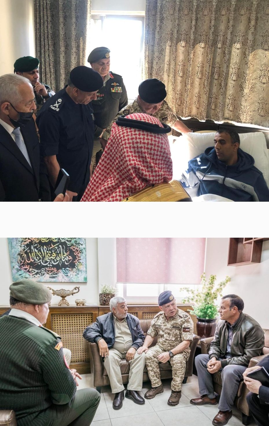 نبأ الأردن - عاد الملك عبدالله الثاني اليوم السبت مصابي الاجهزة الامنية في أحداث الحسينية في معان الملازم فيصل الدعجة والرقيب محمد السرحان.