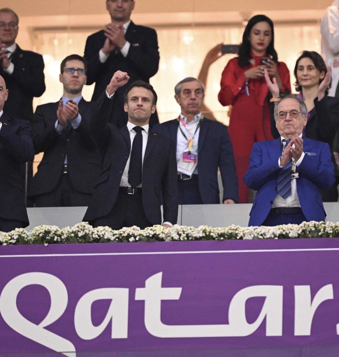 وبحسب وكالة الصحافة الفرنسية، يرافق ماكرون إلى قطر اللاعبون الدوليون السابقون، آلان جيريس وبرونو شيرو ولور بولو، إضافة الى الحكم الدولي ستيفاني فرابار. ويرافقه كذلك في الرحلة بطل الملاكمة ابراهيم اسلوم والجودو تيدي رينر، الى جانب وزيرة الرياضة إميلي اوديا-كاستيرا.